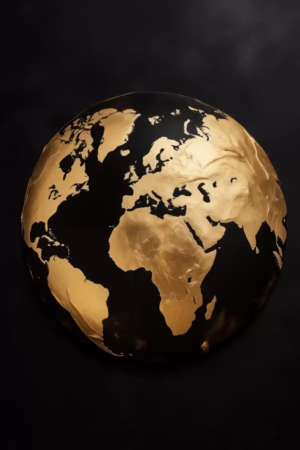 Affiche Globe terrestre abstrait texturé jaune, planète sur fond noir, art minimaliste moderne Non f45942