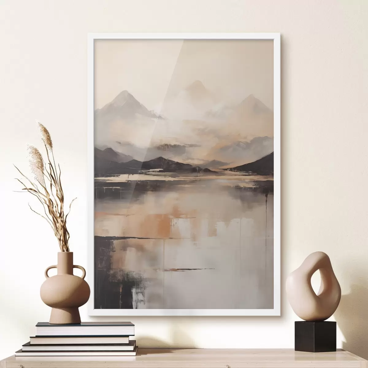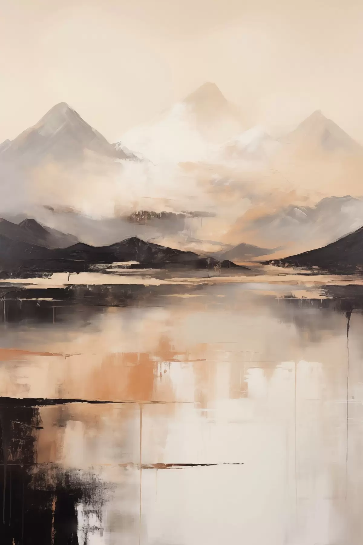 Affiche Une peinture imitant un paysage texturé représentant des montagnes et un lac f45950