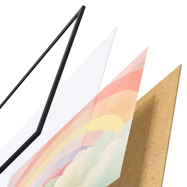 Le poster se compose d'un cadre, d'un plexiglas, d'une image imprimée et d'un support en aggloméré. Le poster peut être immédiatement accroché au mur grâce aux fixations au dos.