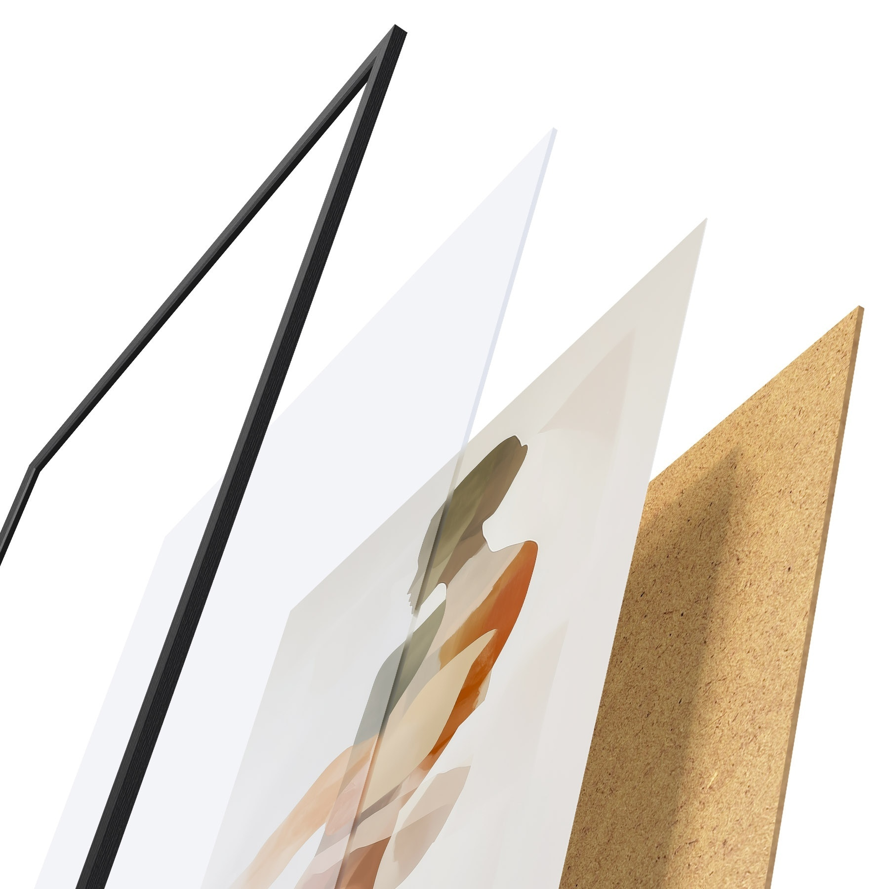 Le poster se compose d'un cadre, d'un plexiglas, d'une image imprimée et d'un support en aggloméré. Le poster peut être immédiatement accroché au mur grâce aux fixations au dos.