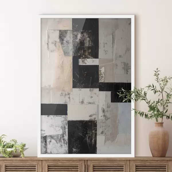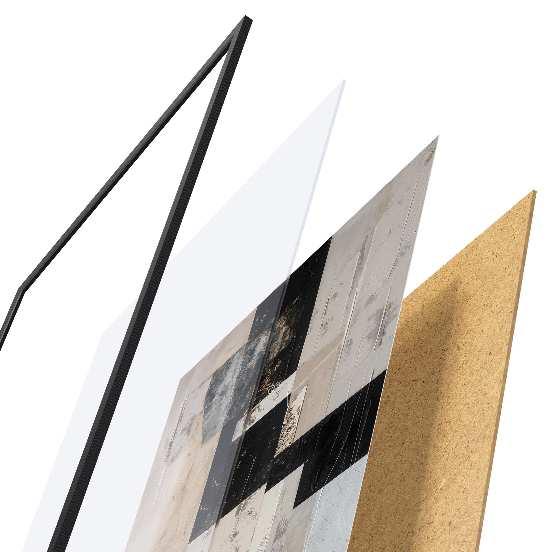 Le poster se compose d'un cadre, d'un plexiglas, d'une image imprimée et d'un support en aggloméré. Le poster peut être immédiatement accroché au mur grâce aux fixations au dos.