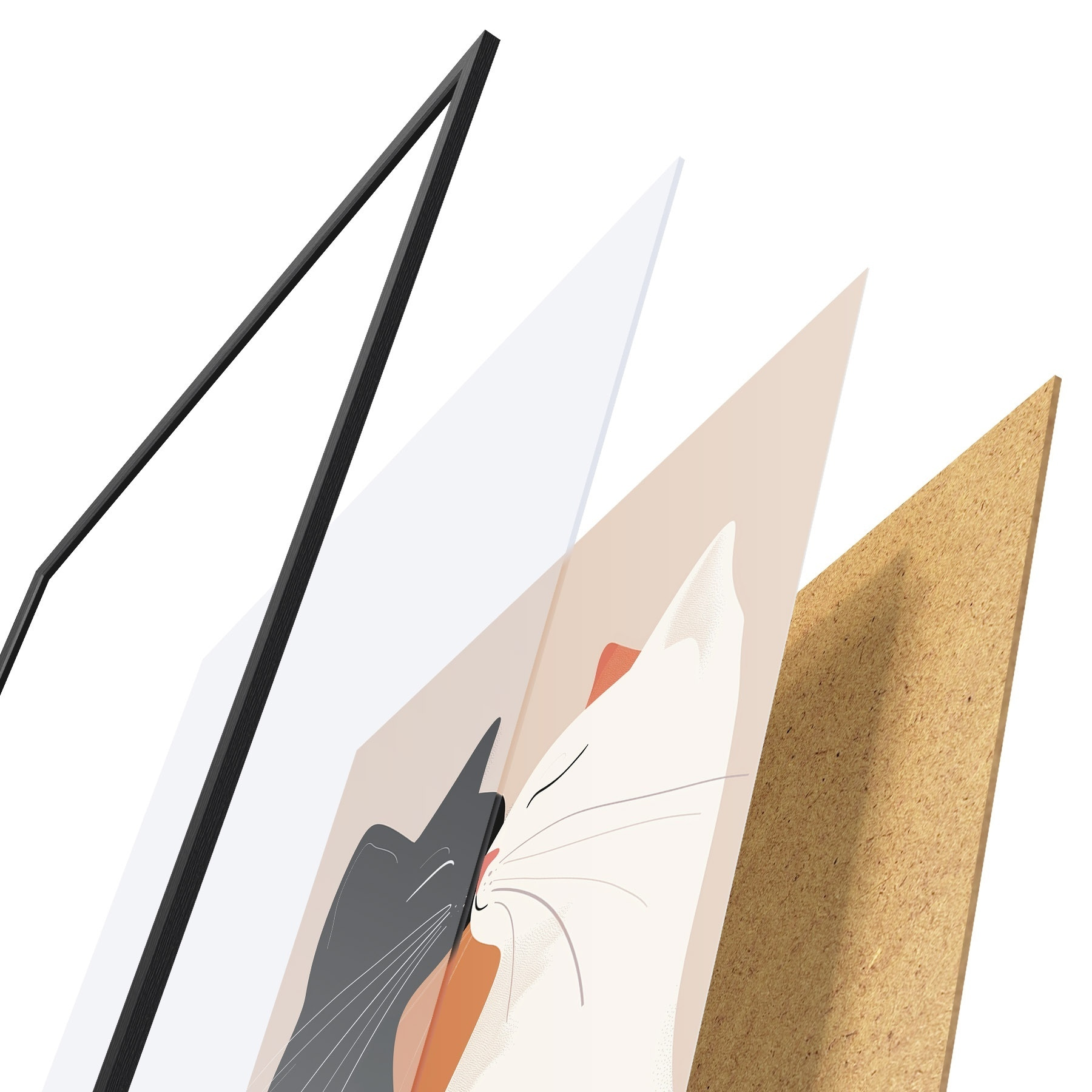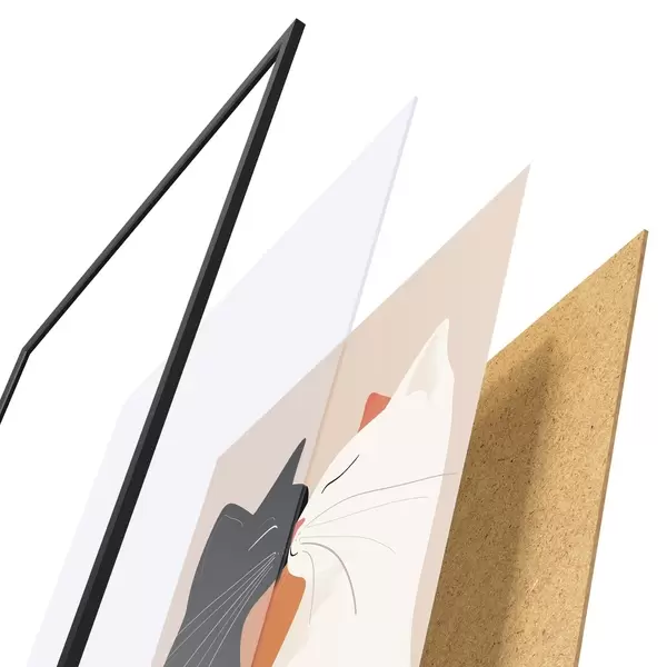 Le poster se compose d'un cadre, d'un plexiglas, d'une image imprimée et d'un support en aggloméré. Le poster peut être immédiatement accroché au mur grâce aux fixations au dos.