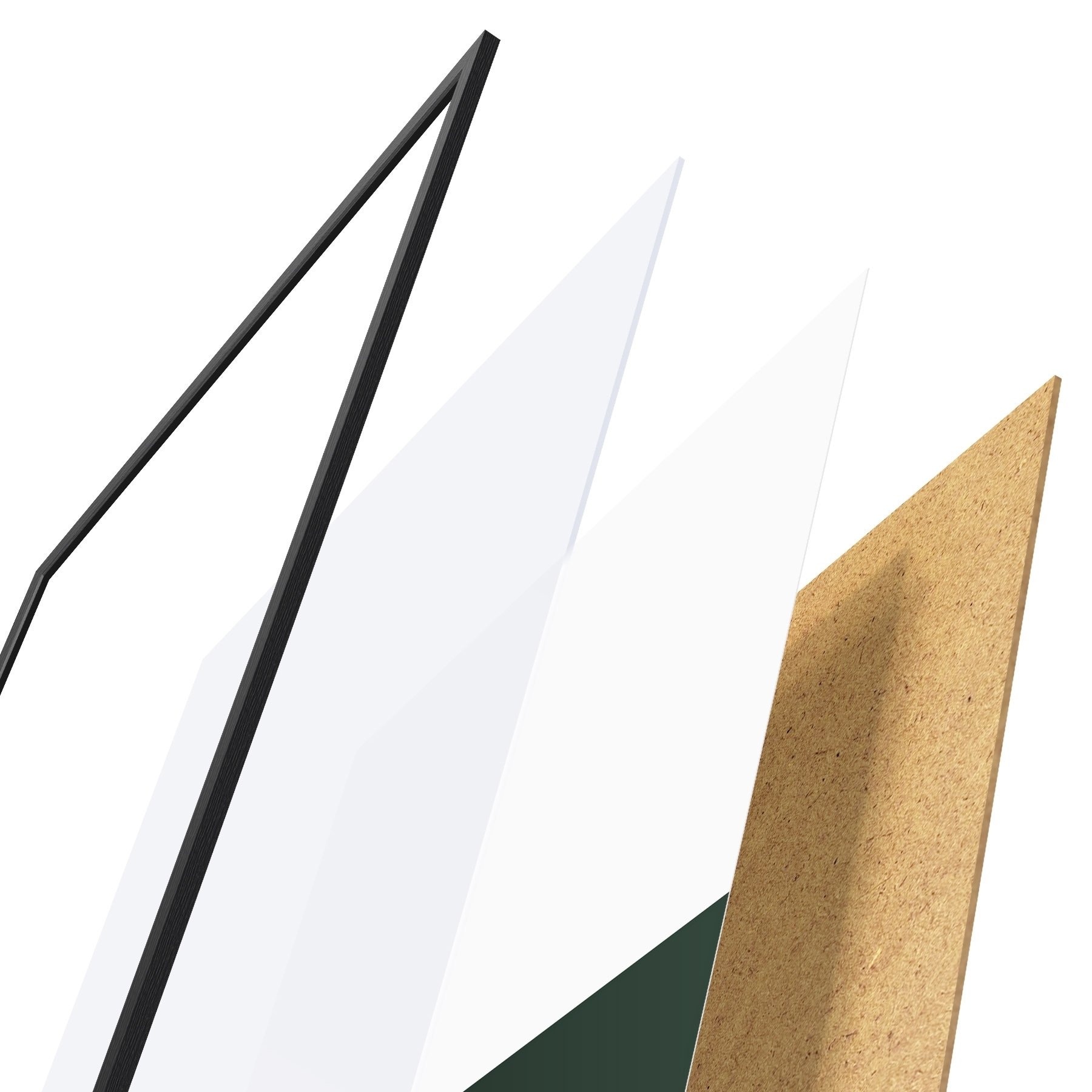 Le poster se compose d'un cadre, d'un plexiglas, d'une image imprimée et d'un support en aggloméré. Le poster peut être immédiatement accroché au mur grâce aux fixations au dos.