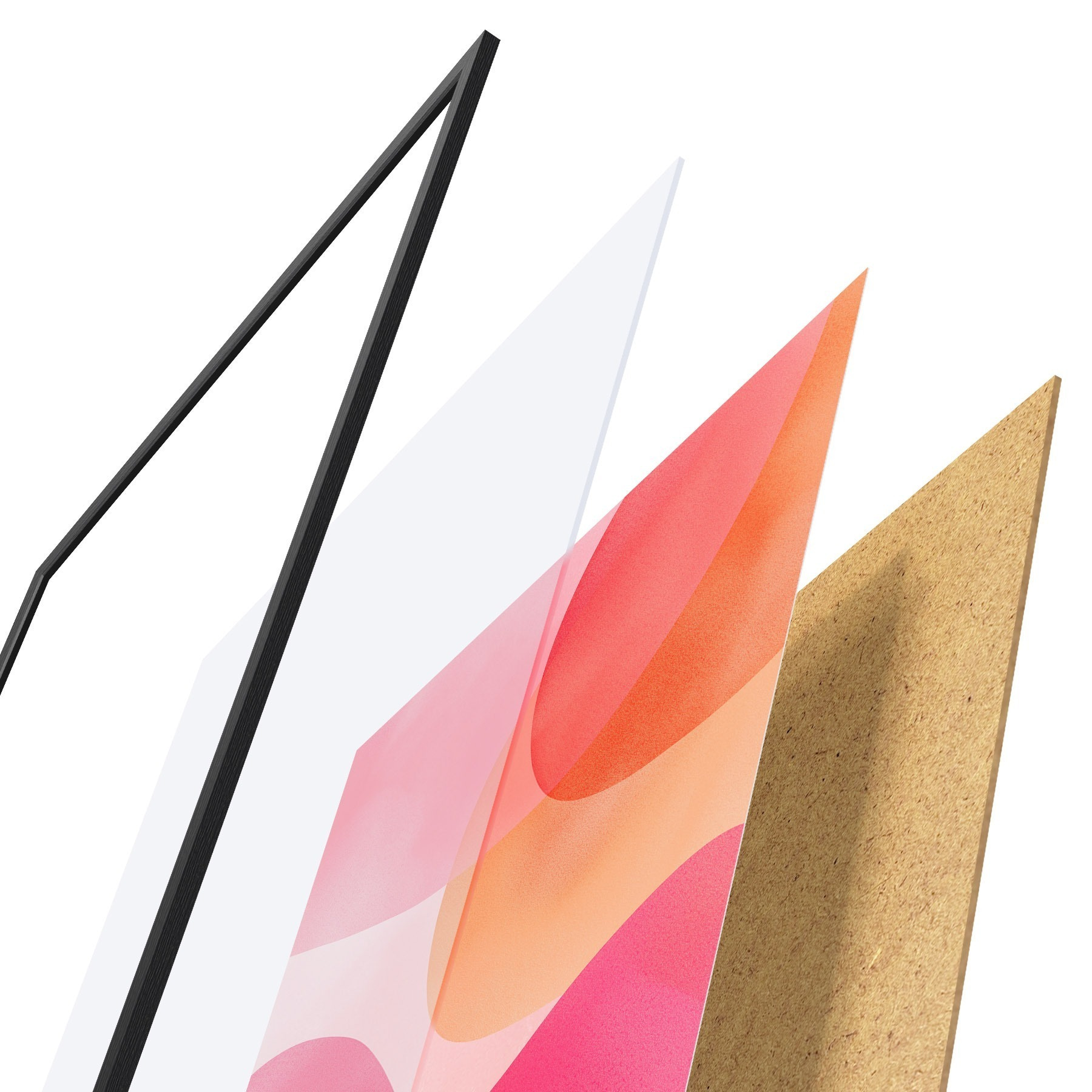 Le poster se compose d'un cadre, d'un plexiglas, d'une image imprimée et d'un support en aggloméré. Le poster peut être immédiatement accroché au mur grâce aux fixations au dos.