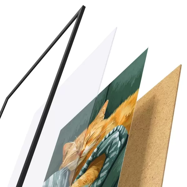 Le poster se compose d'un cadre, d'un plexiglas, d'une image imprimée et d'un support en aggloméré. Le poster peut être immédiatement accroché au mur grâce aux fixations au dos.