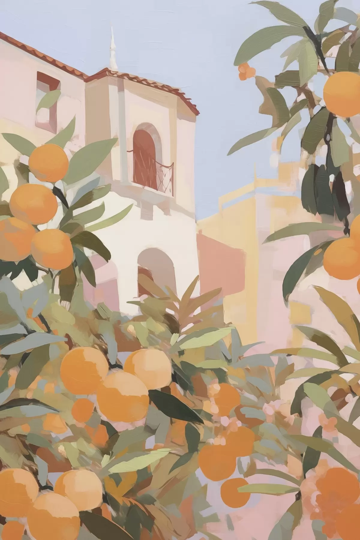 Affiche Des oranges sur une branche devant la maison Non f46060