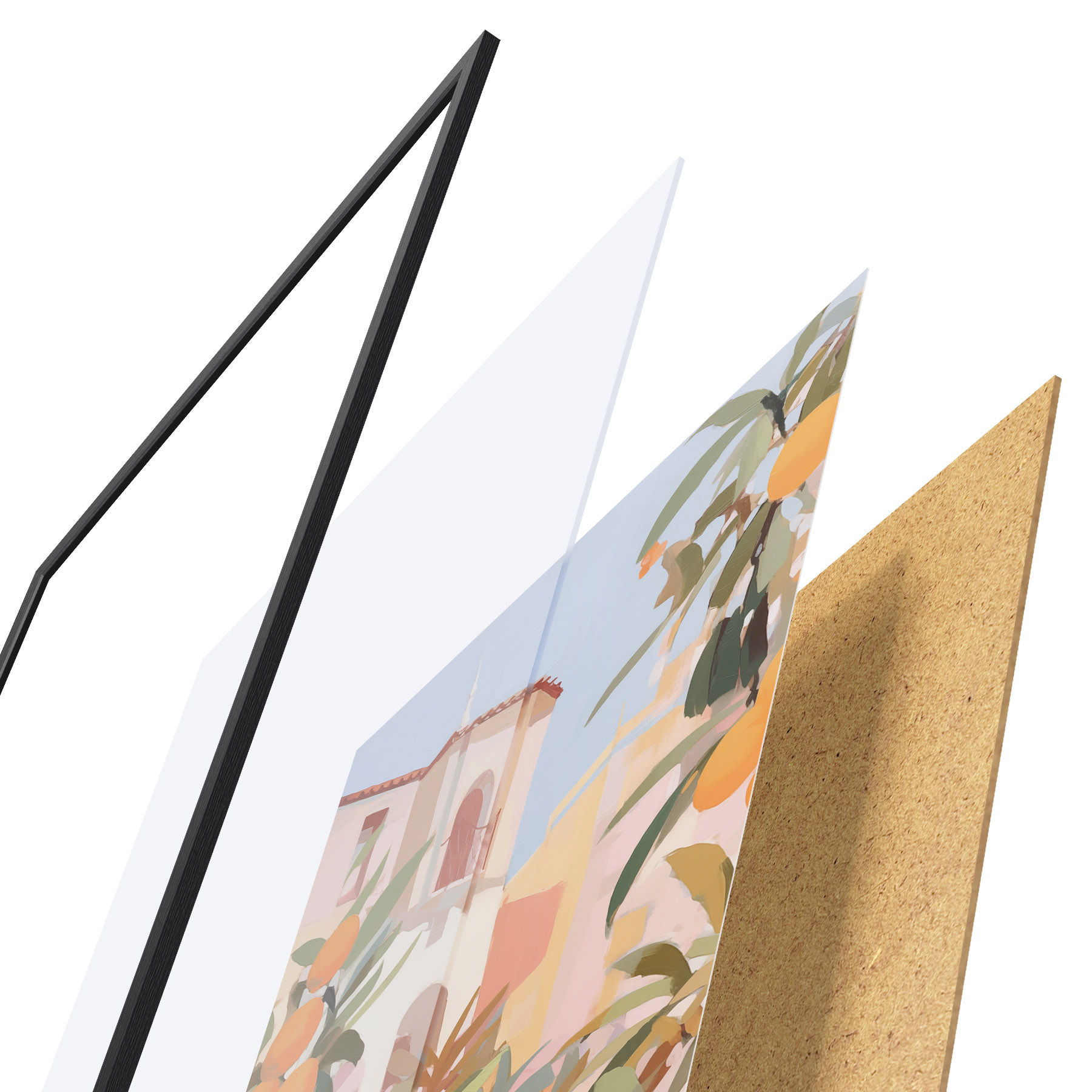 Le poster se compose d'un cadre, d'un plexiglas, d'une image imprimée et d'un support en aggloméré. Le poster peut être immédiatement accroché au mur grâce aux fixations au dos.