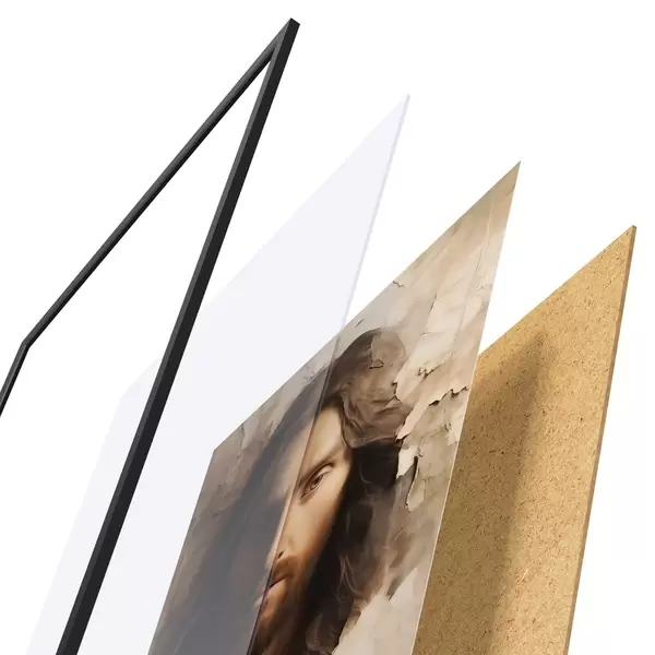 Le poster se compose d'un cadre, d'un plexiglas, d'une image imprimée et d'un support en aggloméré. Le poster peut être immédiatement accroché au mur grâce aux fixations au dos.