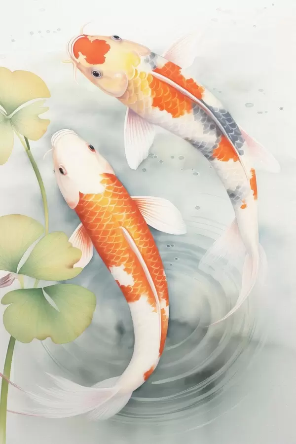 Affiche Deux magnifiques poissons dans un étang Non f46086
