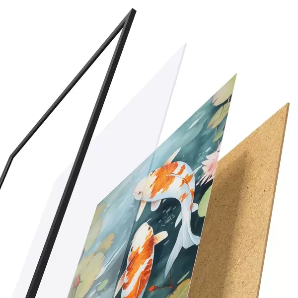 Le poster se compose d'un cadre, d'un plexiglas, d'une image imprimée et d'un support en aggloméré. Le poster peut être immédiatement accroché au mur grâce aux fixations au dos.