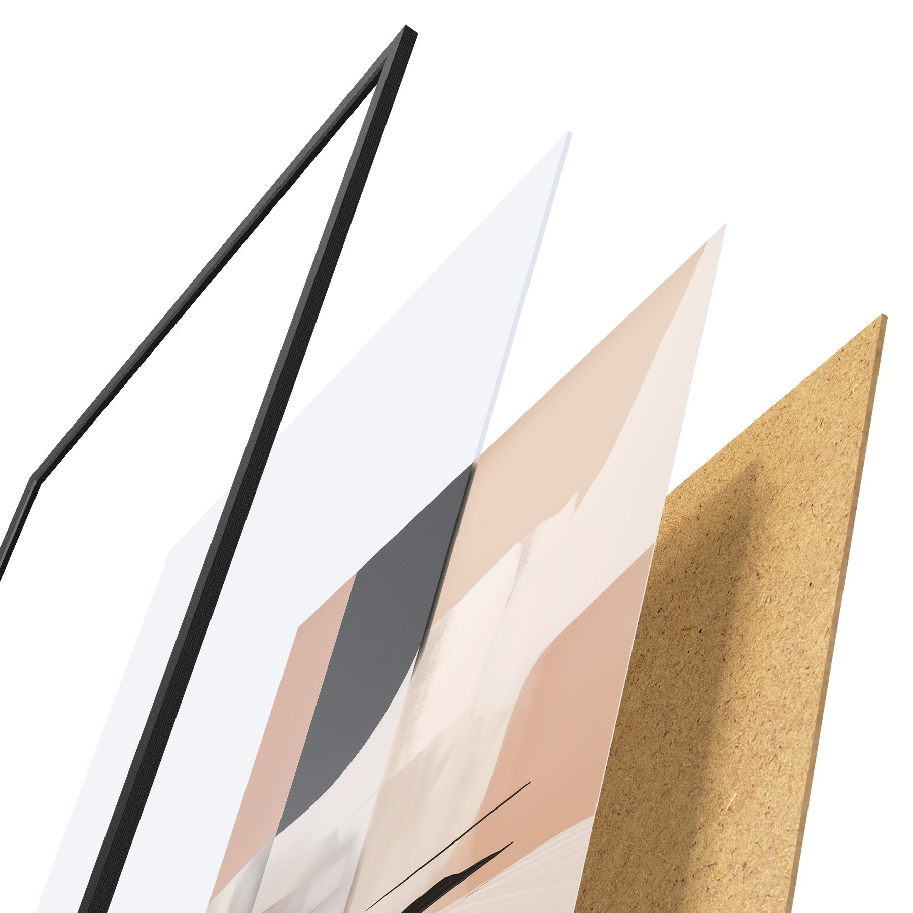Le poster se compose d'un cadre, d'un plexiglas, d'une image imprimée et d'un support en aggloméré. Le poster peut être immédiatement accroché au mur grâce aux fixations au dos.