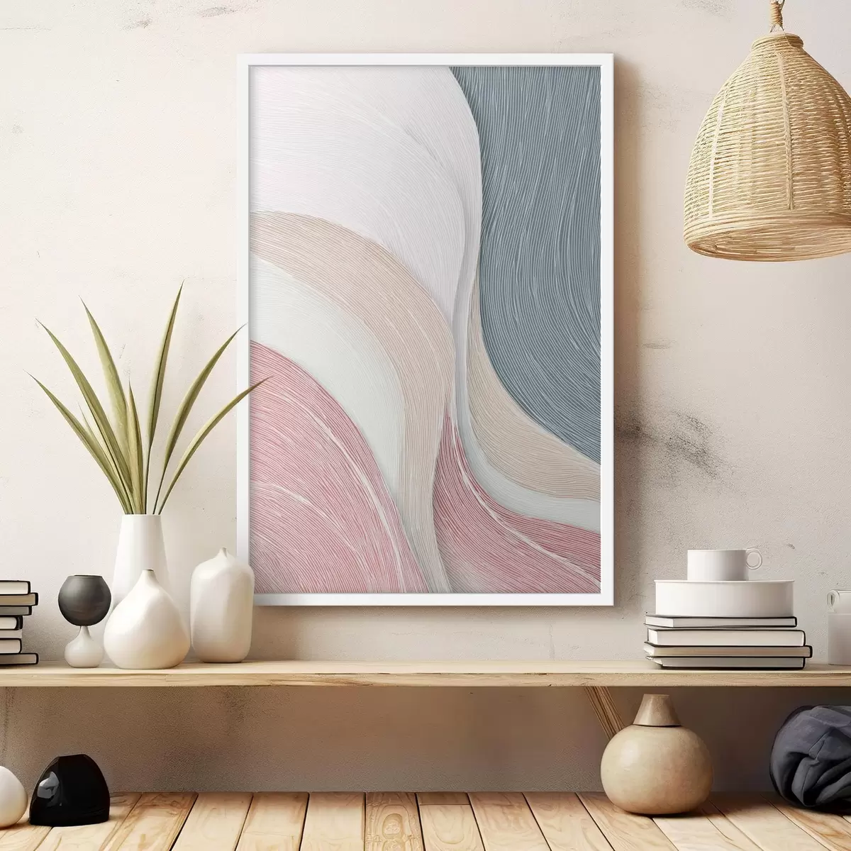 Affiche Légères vagues abstraites dans des tons rose pâle et gris-blanc Non f46153