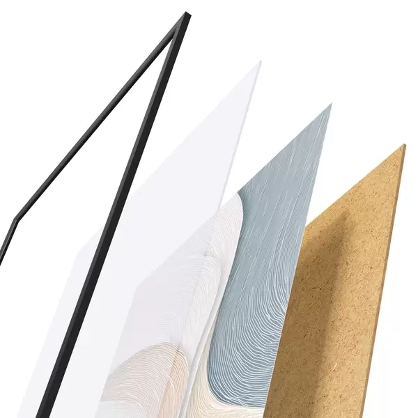 Le poster se compose d'un cadre, d'un plexiglas, d'une image imprimée et d'un support en aggloméré. Le poster peut être immédiatement accroché au mur grâce aux fixations au dos.