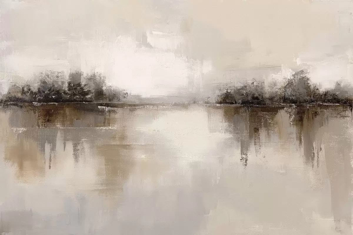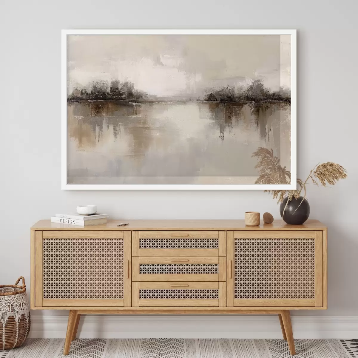 Affiche Paysage doux avec un lac dans des tons chauds beige-gris Non f46158