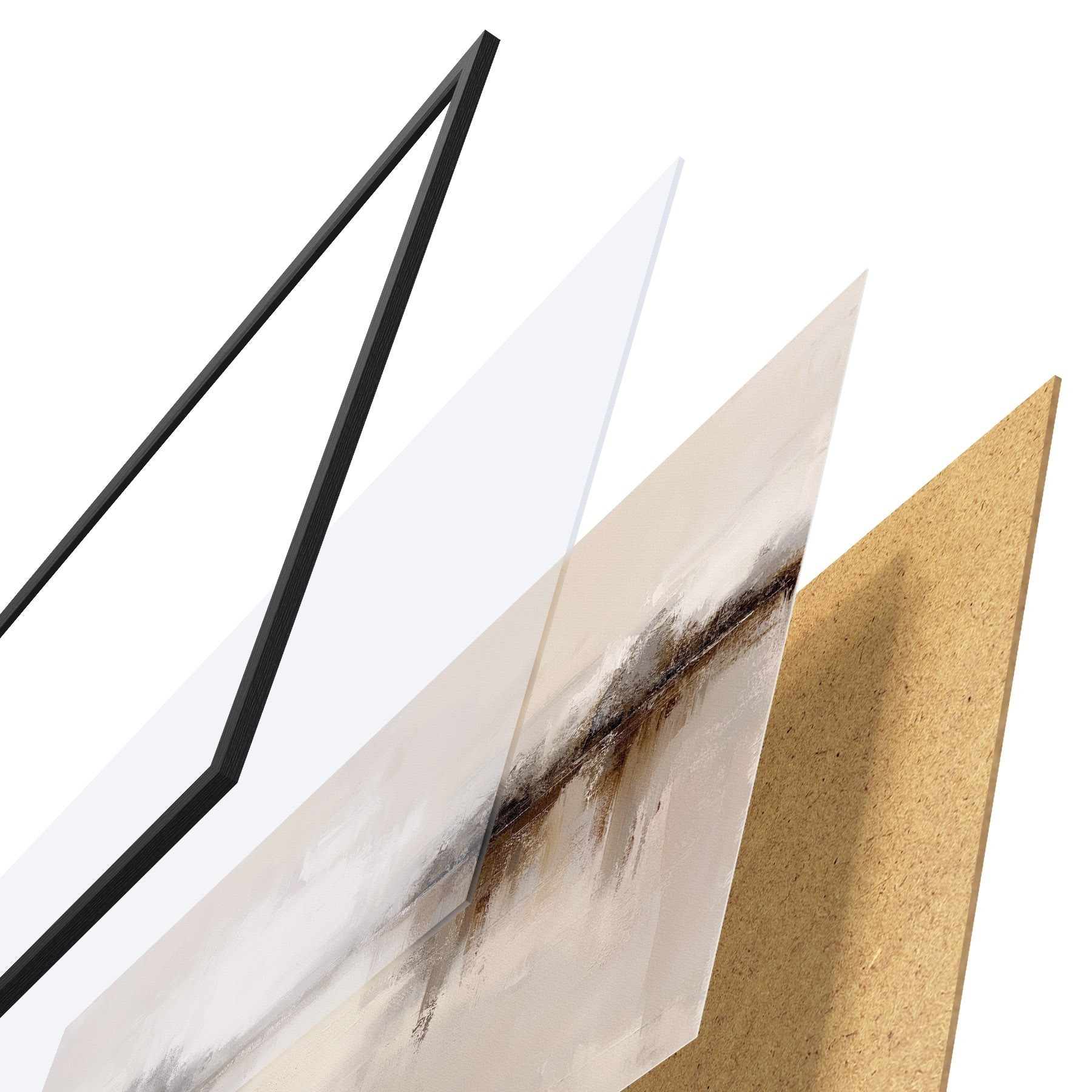 Le poster se compose d'un cadre, d'un plexiglas, d'une image imprimée et d'un support en aggloméré. Le poster peut être immédiatement accroché au mur grâce aux fixations au dos.