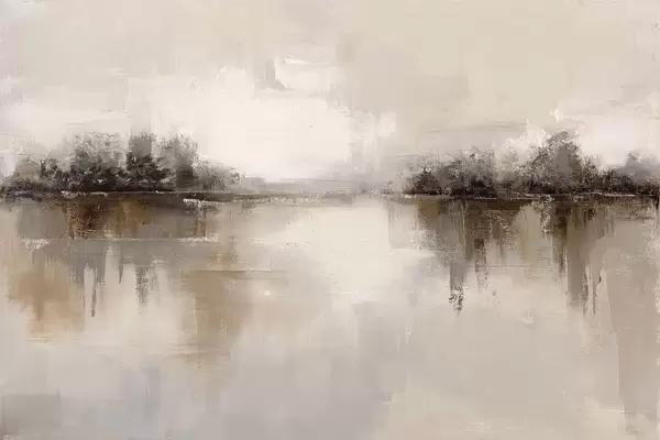 Affiche Paysage doux avec un lac dans des tons chauds beige-gris Non f46158