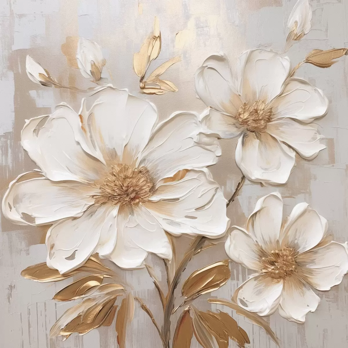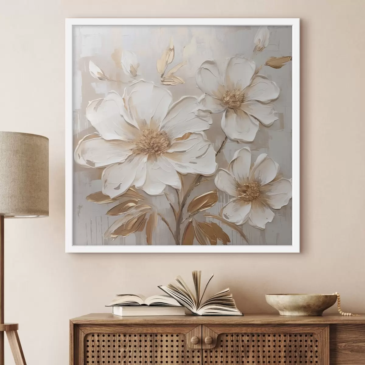 Affiche Fleurs texturées sur fond clair aux nuances chaudes f46166