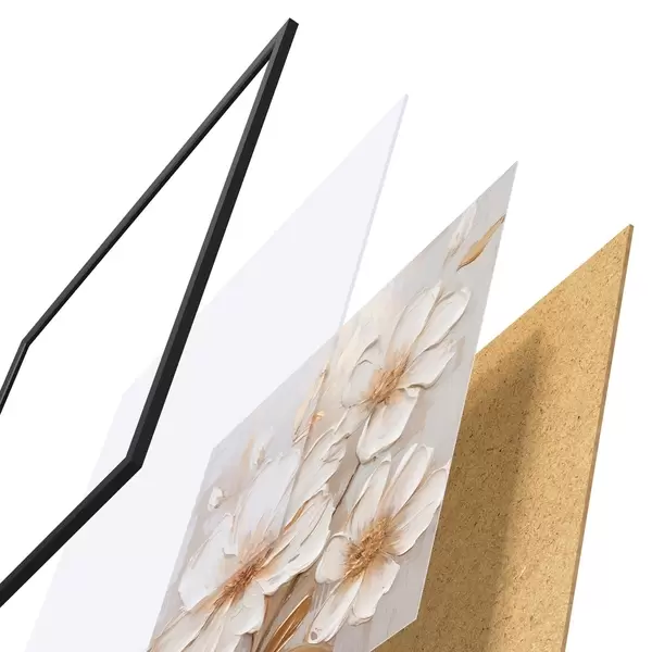 Le poster se compose d'un cadre, d'un plexiglas, d'une image imprimée et d'un support en aggloméré. Le poster peut être immédiatement accroché au mur grâce aux fixations au dos.
