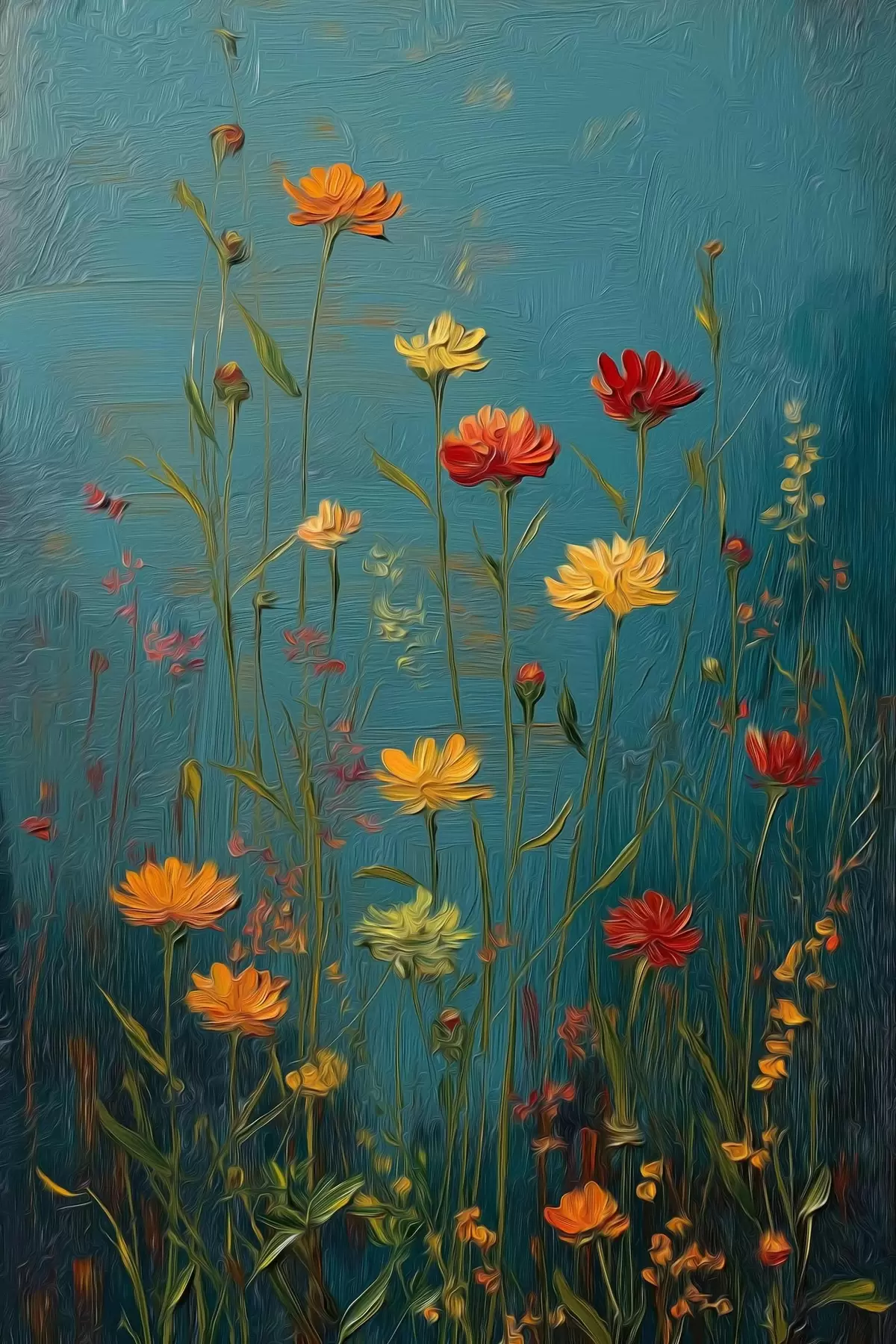 Affiche Fleurs sauvages sur fond turquoise foncé Non f46169