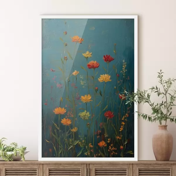 Affiche Fleurs sauvages sur fond turquoise foncé f46169