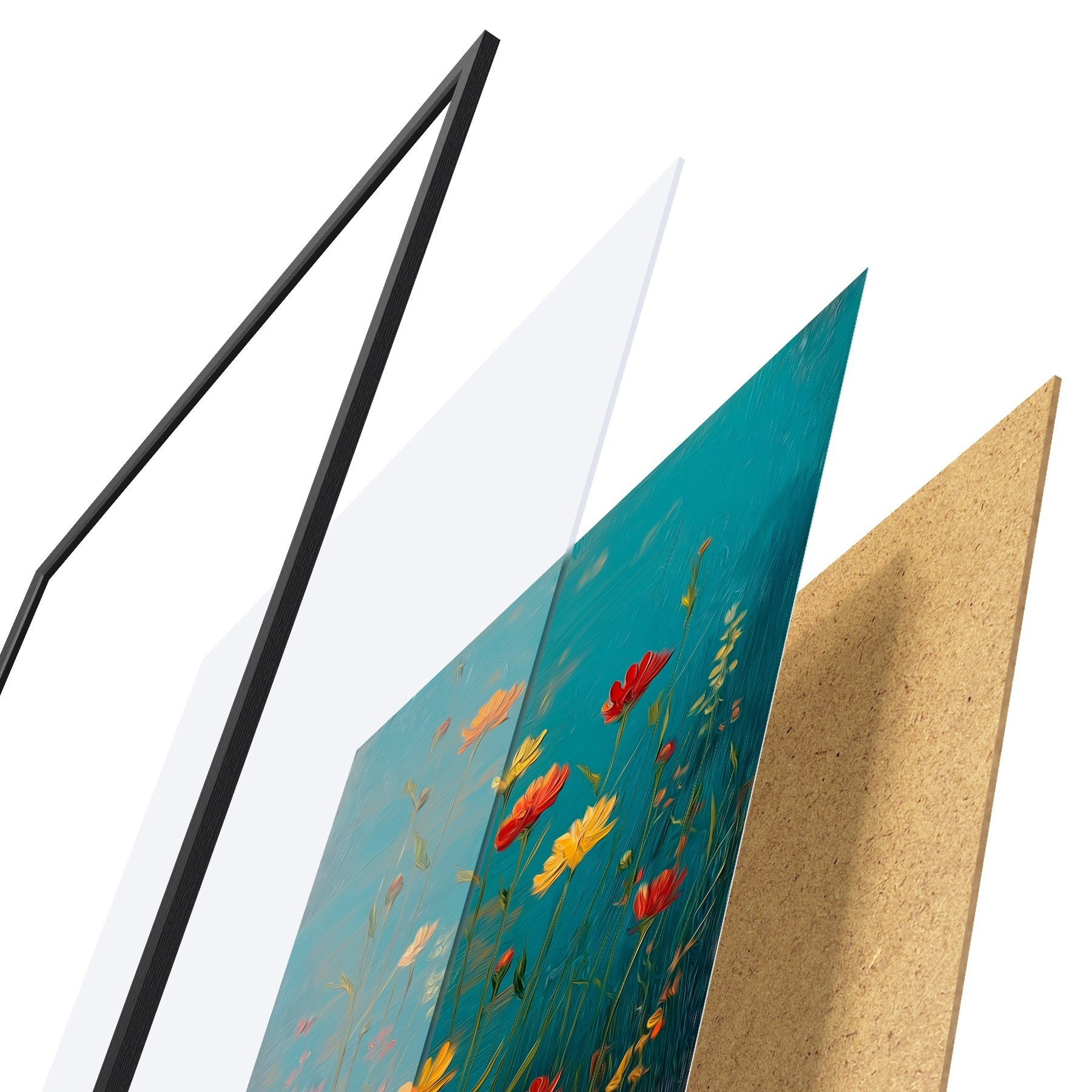Le poster se compose d'un cadre, d'un plexiglas, d'une image imprimée et d'un support en aggloméré. Le poster peut être immédiatement accroché au mur grâce aux fixations au dos.
