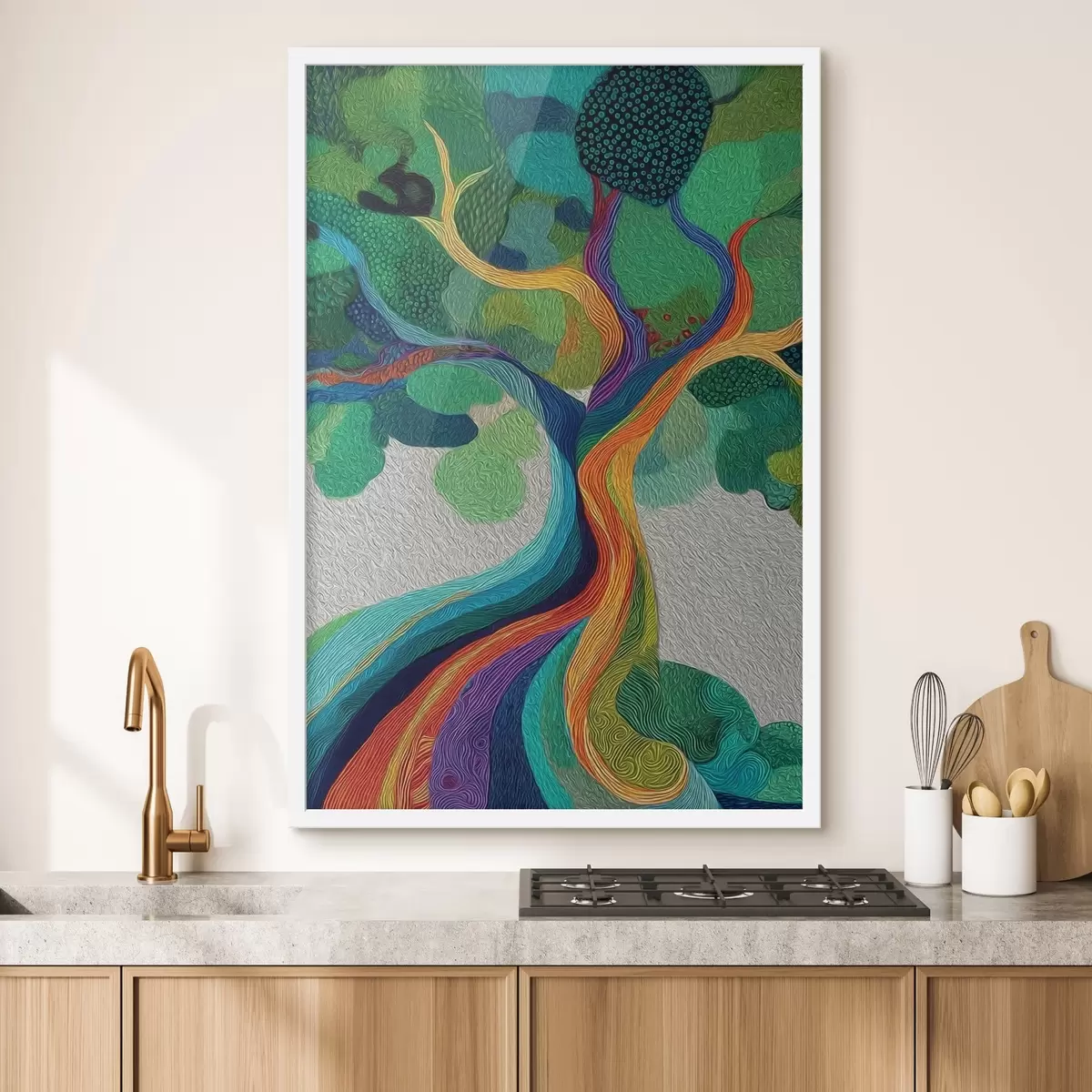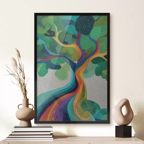 Affiche Arbre aux branches arc-en-ciel sur fond vert Non f46173