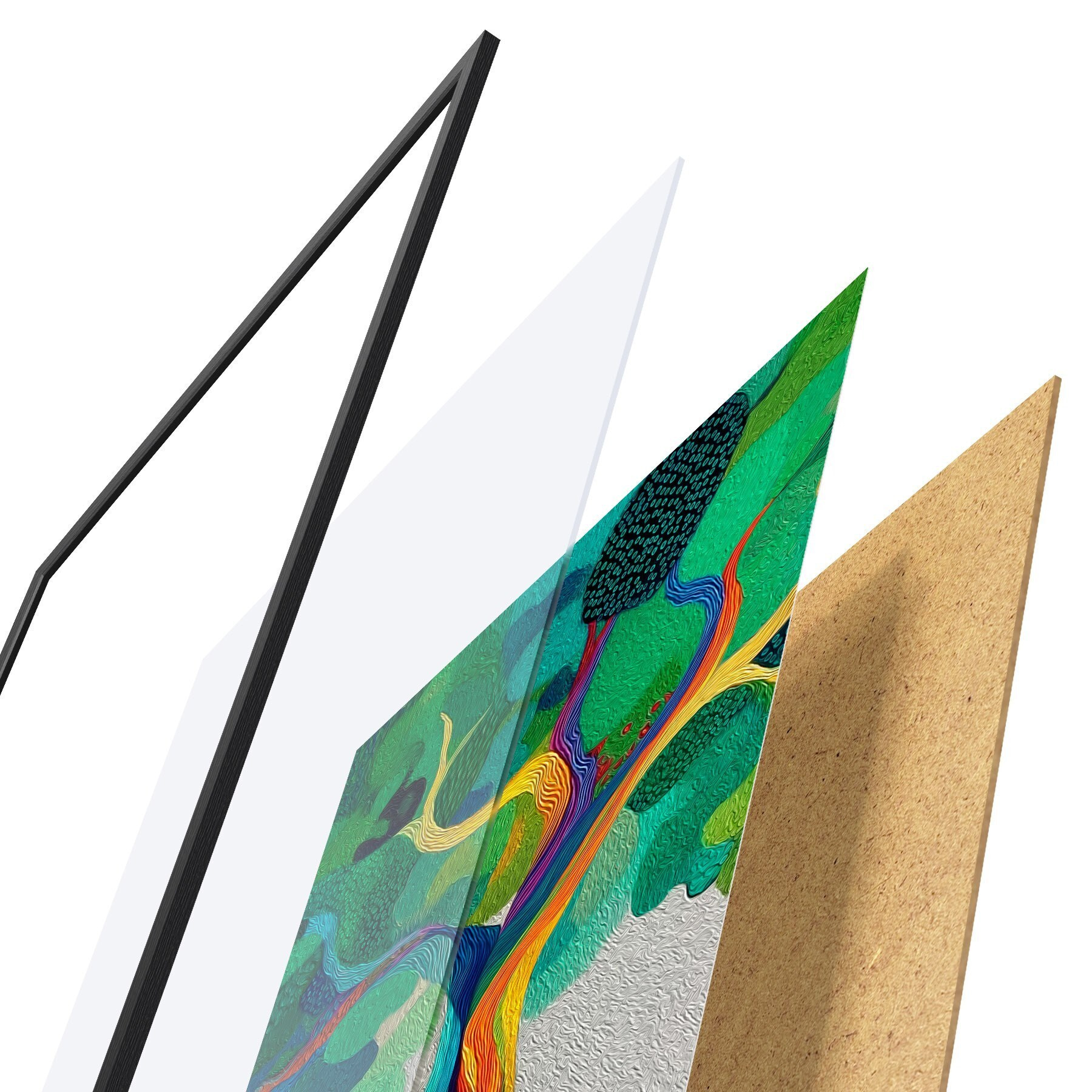 Le poster se compose d'un cadre, d'un plexiglas, d'une image imprimée et d'un support en aggloméré. Le poster peut être immédiatement accroché au mur grâce aux fixations au dos.