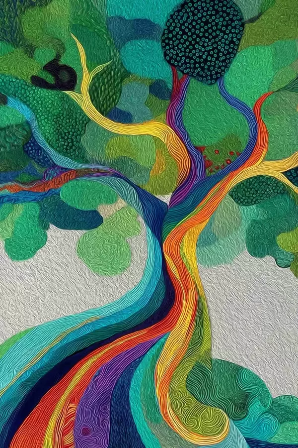 Affiche Arbre aux branches arc-en-ciel sur fond vert Non f46173
