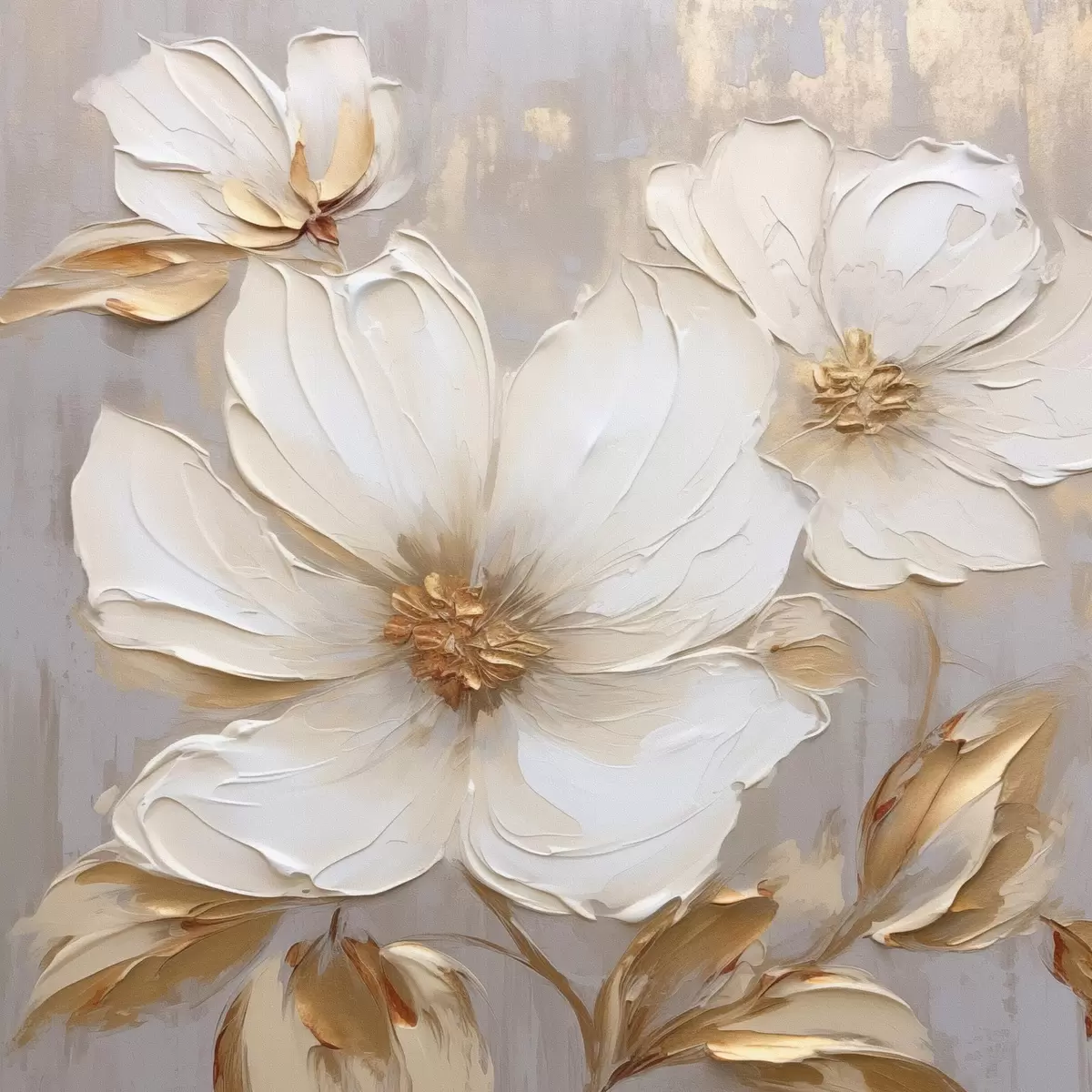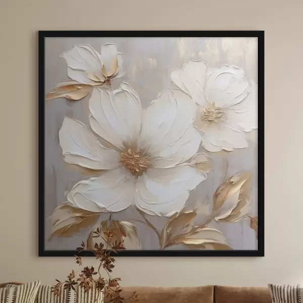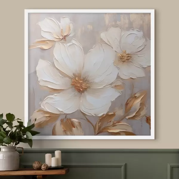 Affiche Grandes fleurs texturées avec des coups de pinceau dans une palette de couleurs chaudes Non f46176