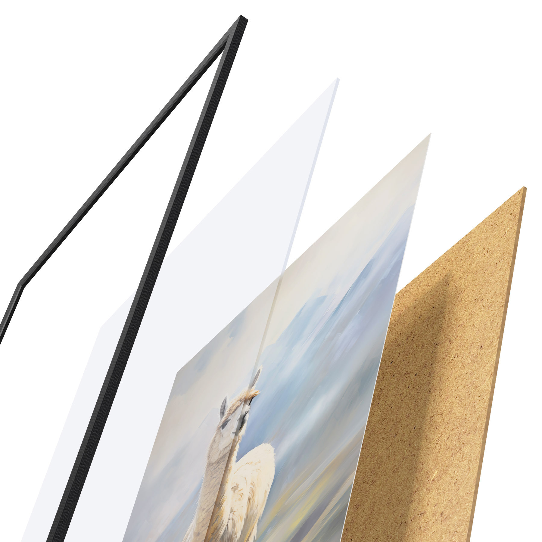 Le poster se compose d'un cadre, d'un plexiglas, d'une image imprimée et d'un support en aggloméré. Le poster peut être immédiatement accroché au mur grâce aux fixations au dos.