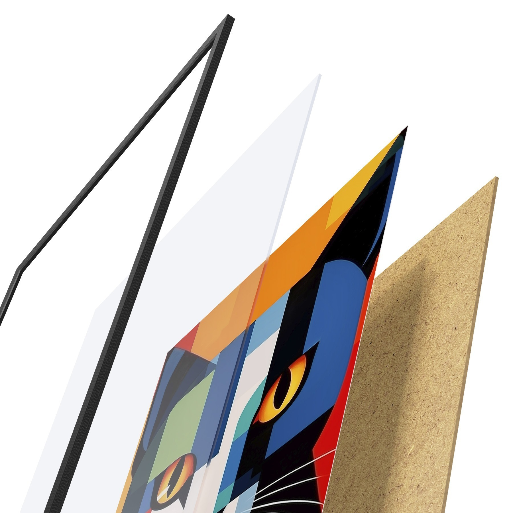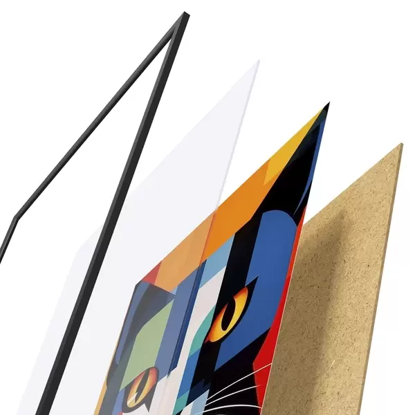 Le poster se compose d'un cadre, d'un plexiglas, d'une image imprimée et d'un support en aggloméré. Le poster peut être immédiatement accroché au mur grâce aux fixations au dos.