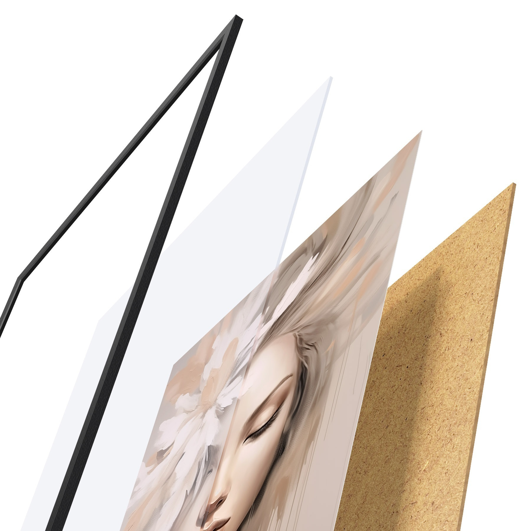 Le poster se compose d'un cadre, d'un plexiglas, d'une image imprimée et d'un support en aggloméré. Le poster peut être immédiatement accroché au mur grâce aux fixations au dos.
