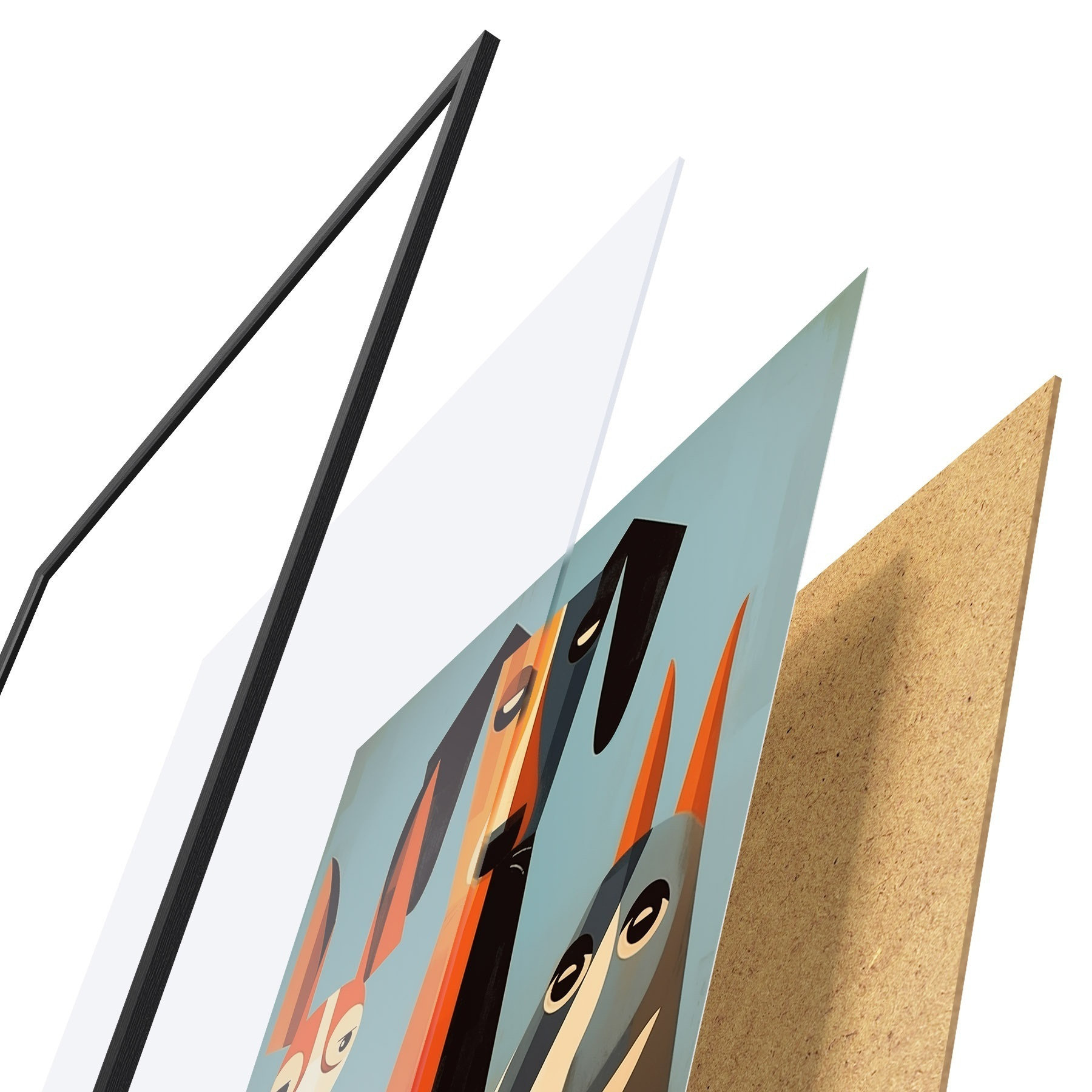 Le poster se compose d'un cadre, d'un plexiglas, d'une image imprimée et d'un support en aggloméré. Le poster peut être immédiatement accroché au mur grâce aux fixations au dos.
