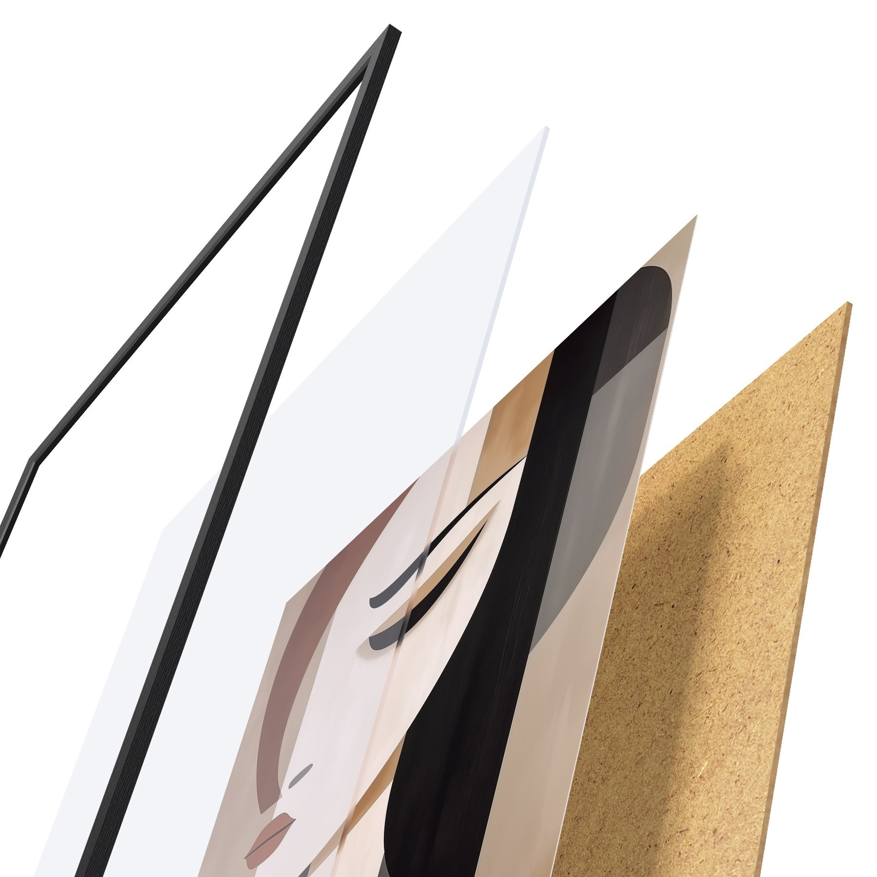 Le poster se compose d'un cadre, d'un plexiglas, d'une image imprimée et d'un support en aggloméré. Le poster peut être immédiatement accroché au mur grâce aux fixations au dos.