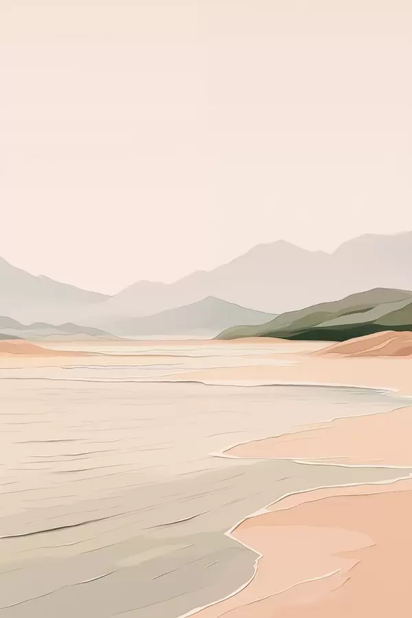 Affiche Paysage minimaliste avec montagnes et rivage Non f46248