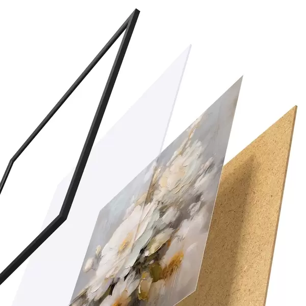 Le poster se compose d'un cadre, d'un plexiglas, d'une image imprimée et d'un support en aggloméré. Le poster peut être immédiatement accroché au mur grâce aux fixations au dos.