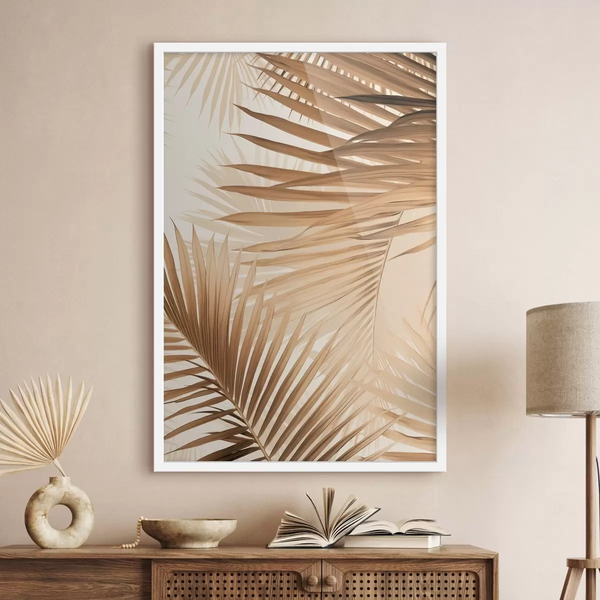 Affiche Feuilles de palmier abstraites dans des tons bruns, tropical, botanique, nature, minimaliste, élégant, design moderne f46275