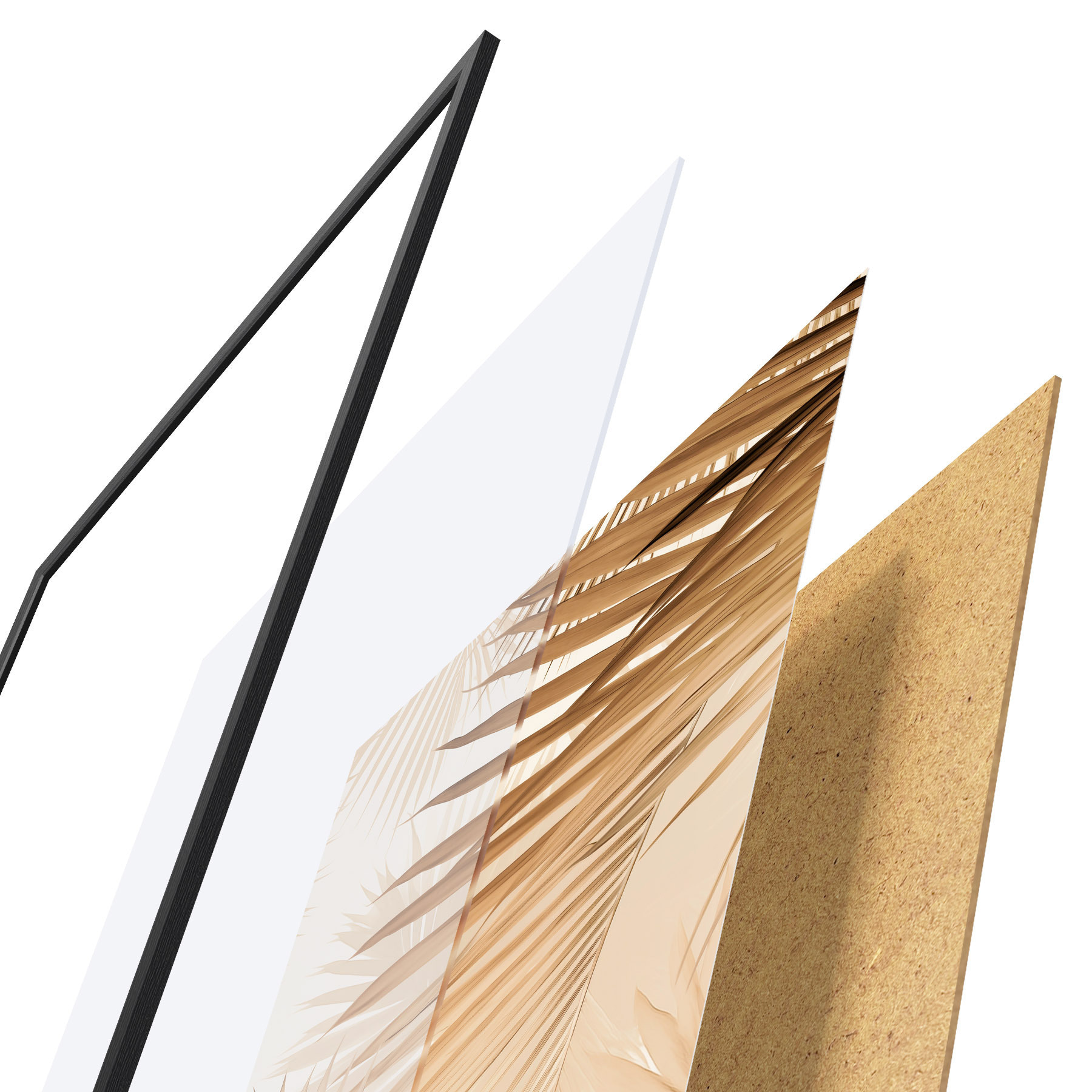 Le poster se compose d'un cadre, d'un plexiglas, d'une image imprimée et d'un support en aggloméré. Le poster peut être immédiatement accroché au mur grâce aux fixations au dos.