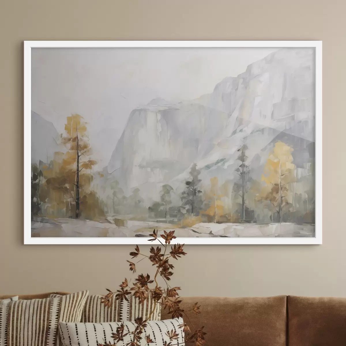 Affiche Paysage d'une forêt devant des montagnes, imitation d'une peinture f46299