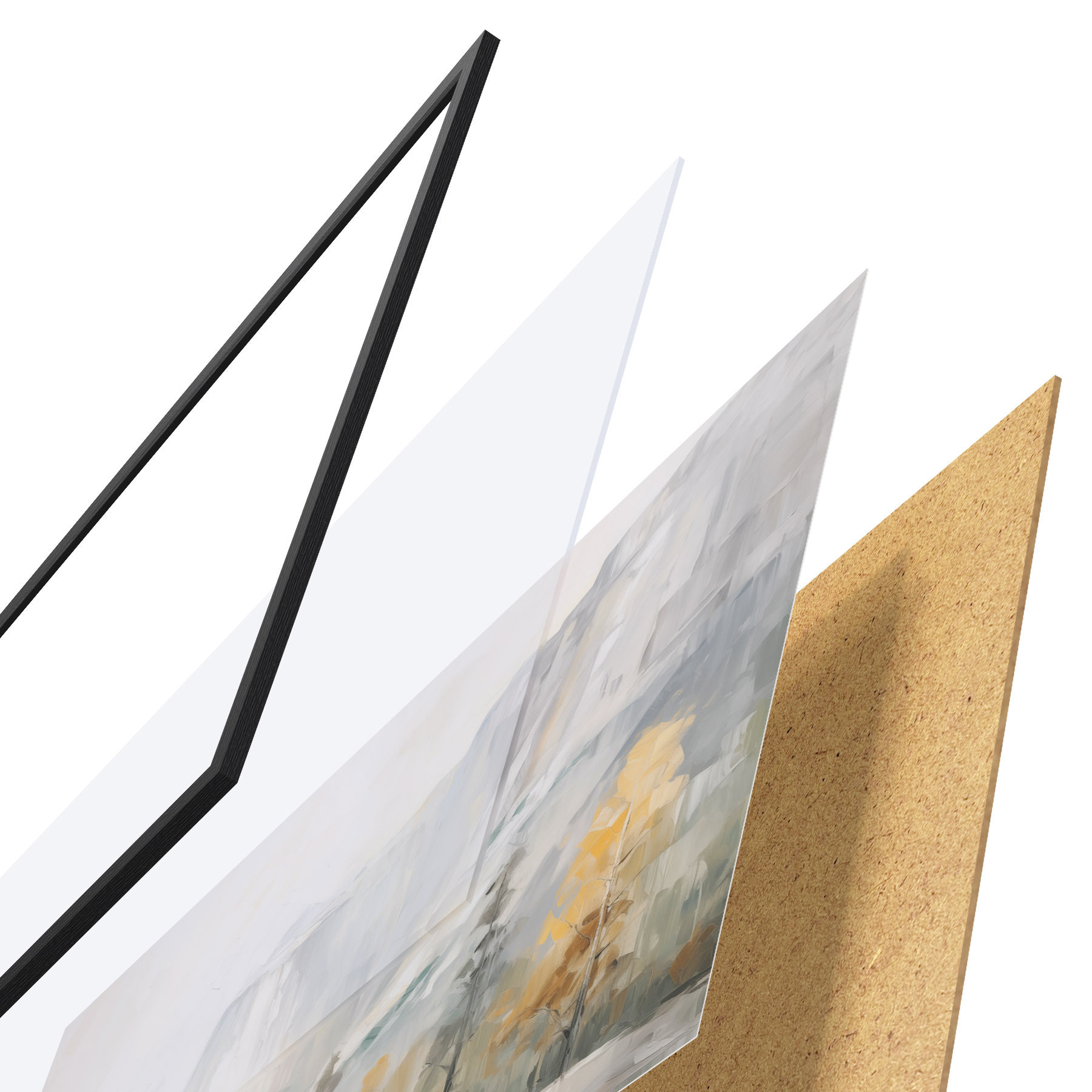 Le poster se compose d'un cadre, d'un plexiglas, d'une image imprimée et d'un support en aggloméré. Le poster peut être immédiatement accroché au mur grâce aux fixations au dos.