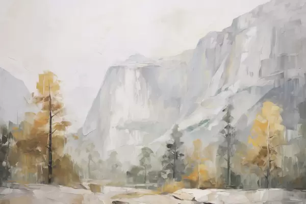 Affiche Paysage d'une forêt devant des montagnes, imitation d'une peinture Non f46299