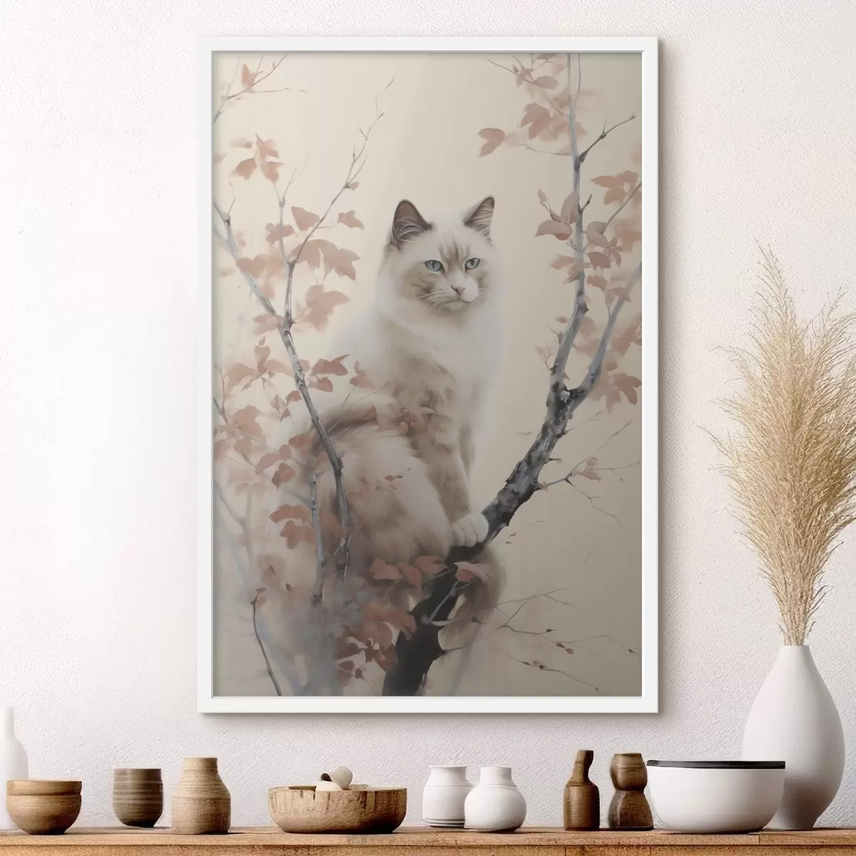 Affiche Le chat est assis sur un arbre Non f46301