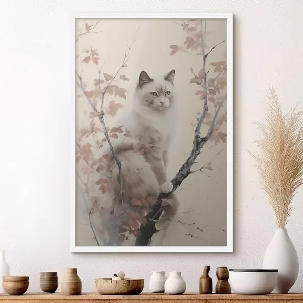 Affiche Le chat est assis sur un arbre f46301