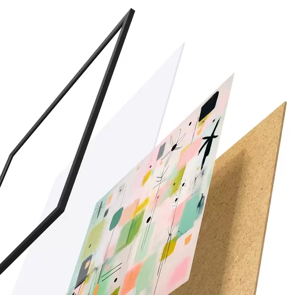 Le poster se compose d'un cadre, d'un plexiglas, d'une image imprimée et d'un support en aggloméré. Le poster peut être immédiatement accroché au mur grâce aux fixations au dos.