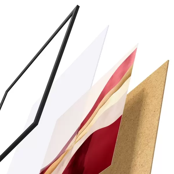 Le poster se compose d'un cadre, d'un plexiglas, d'une image imprimée et d'un support en aggloméré. Le poster peut être immédiatement accroché au mur grâce aux fixations au dos.