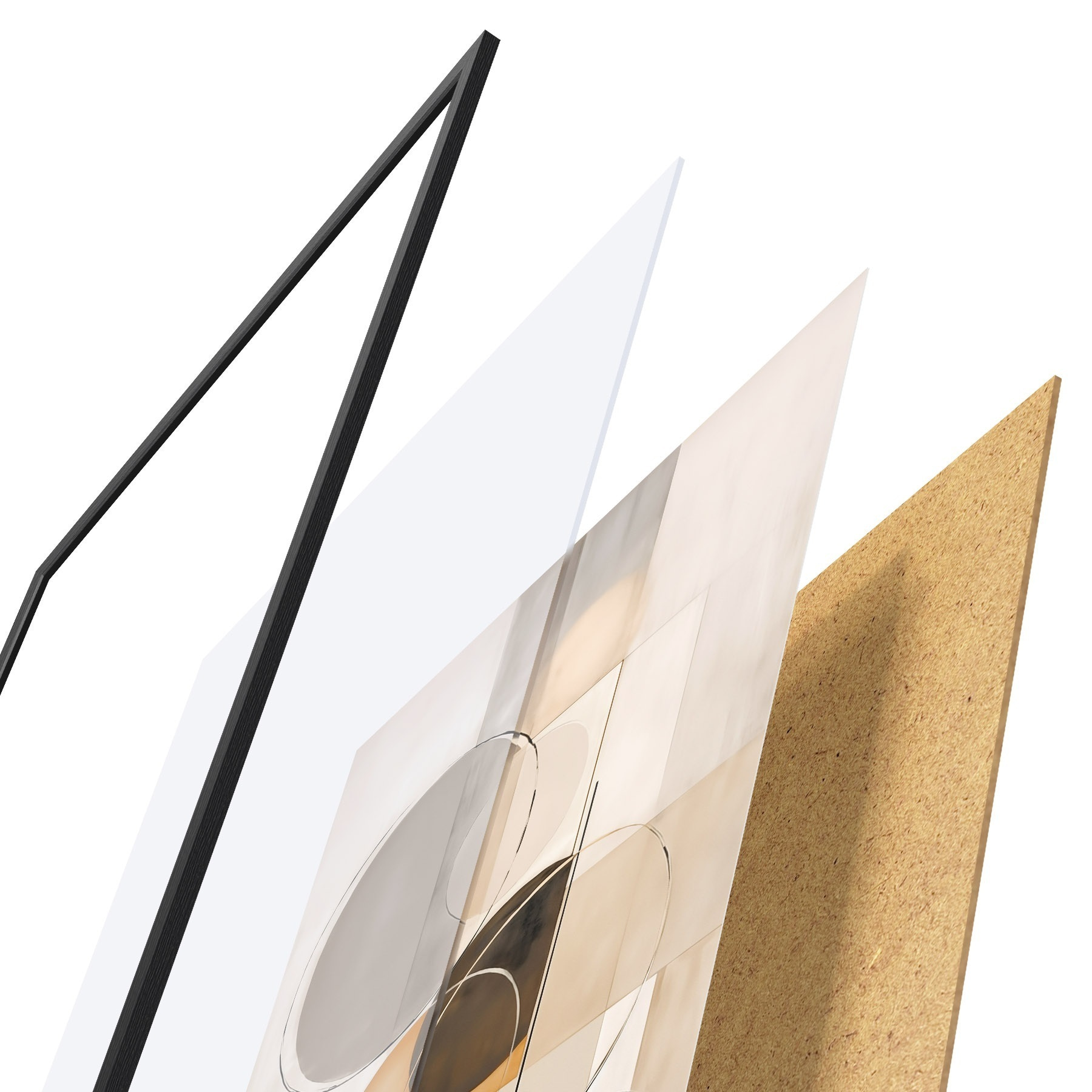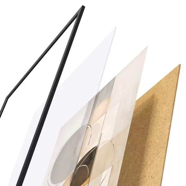 Le poster se compose d'un cadre, d'un plexiglas, d'une image imprimée et d'un support en aggloméré. Le poster peut être immédiatement accroché au mur grâce aux fixations au dos.
