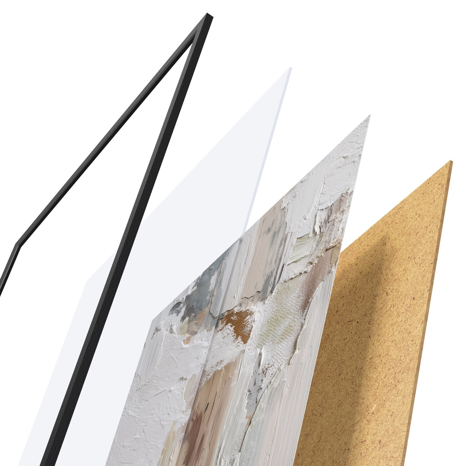 Le poster se compose d'un cadre, d'un plexiglas, d'une image imprimée et d'un support en aggloméré. Le poster peut être immédiatement accroché au mur grâce aux fixations au dos.