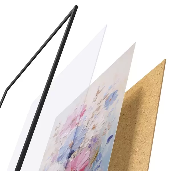 Le poster se compose d'un cadre, d'un plexiglas, d'une image imprimée et d'un support en aggloméré. Le poster peut être immédiatement accroché au mur grâce aux fixations au dos.
