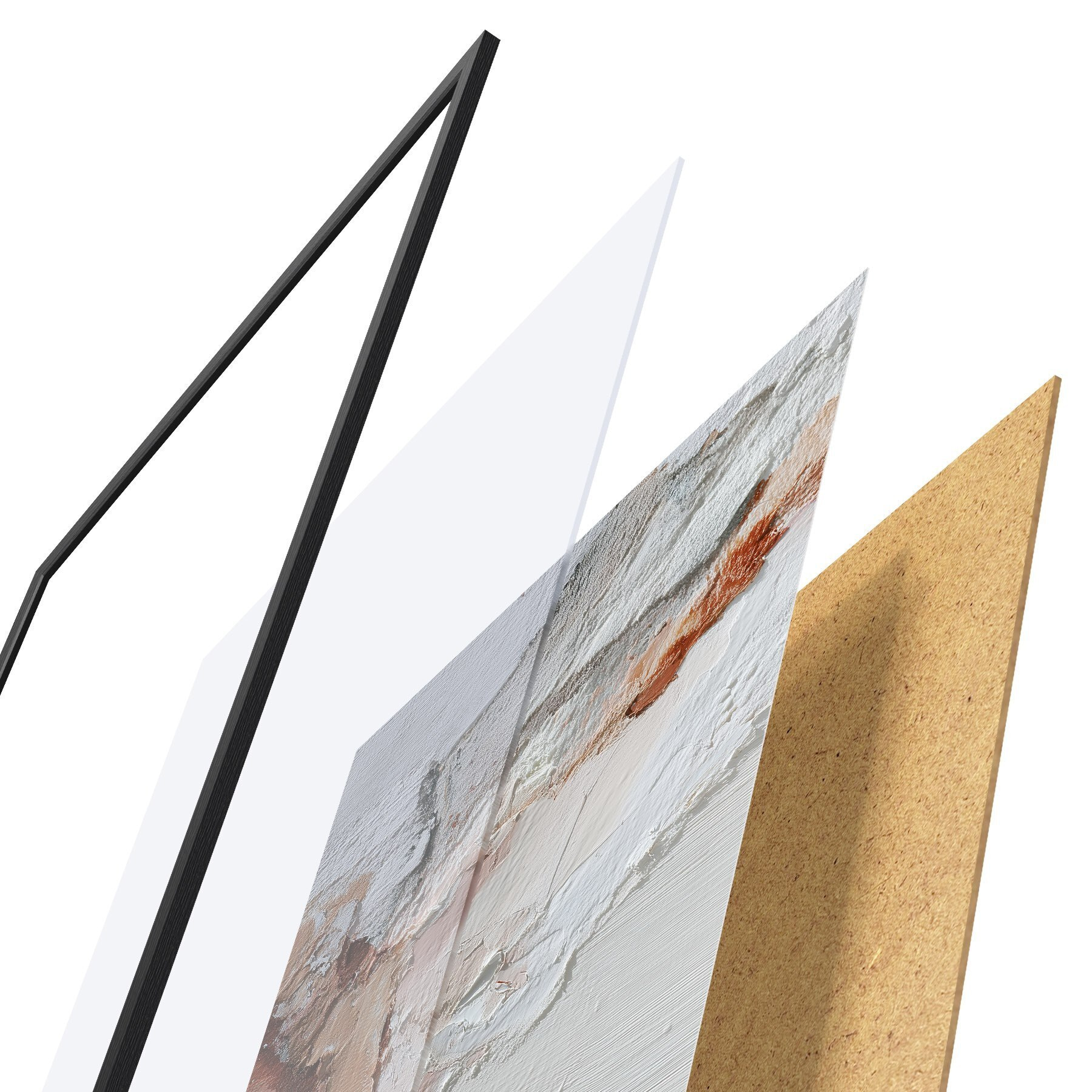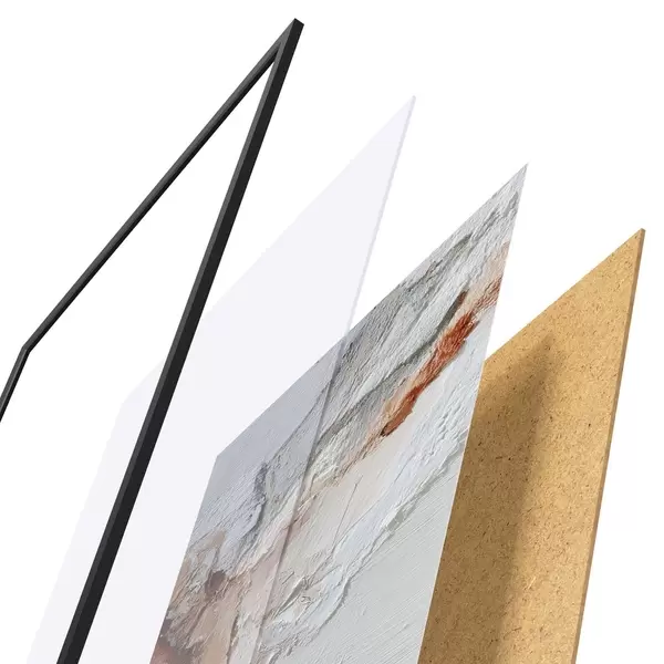 Le poster se compose d'un cadre, d'un plexiglas, d'une image imprimée et d'un support en aggloméré. Le poster peut être immédiatement accroché au mur grâce aux fixations au dos.