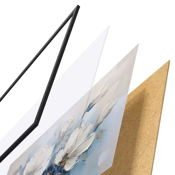 Le poster se compose d'un cadre, d'un plexiglas, d'une image imprimée et d'un support en aggloméré. Le poster peut être immédiatement accroché au mur grâce aux fixations au dos.